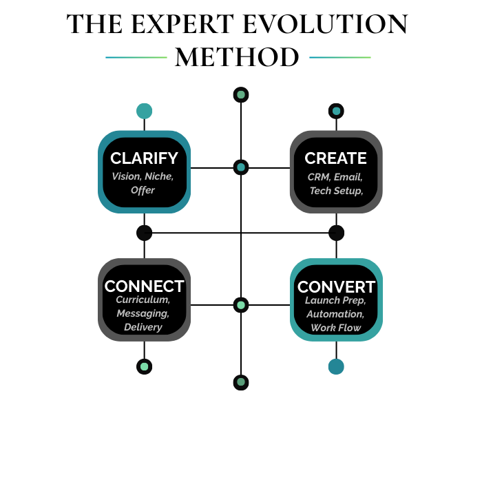 Clarify. Create. Connect. Convert. Everything you need to evolve from expert to online entrepreneur — with intention.