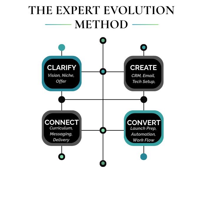 The Expert Evolution Method™ is how we help women 40+ clarify, package, and sell their unique brilliance — with structure, support, and soul. No fluff. No burnout. Just real evolution.